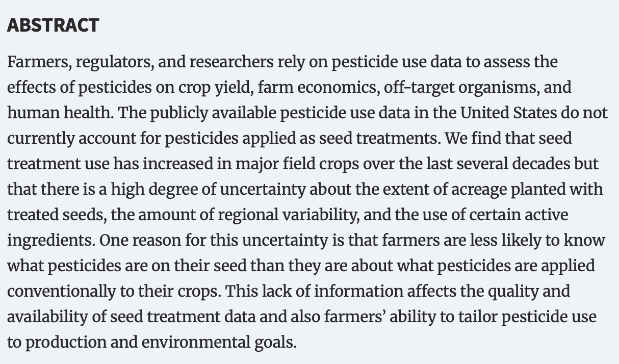 Seed treatment pesticides are often missing from national pesticide-use tracking data (we don’t really know how much is being used)