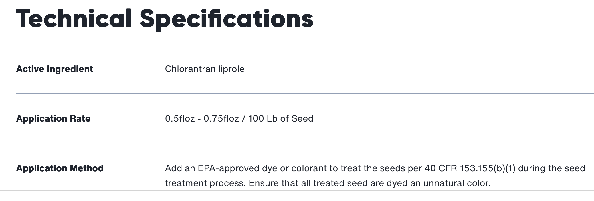 In this example, the only ingredient disclosed is chlorantraniliprole, an insecticide. The remaining formulation is listed as “other ingredients,” which companies are not required to identify, a regulatory loophole we’ll explore next.